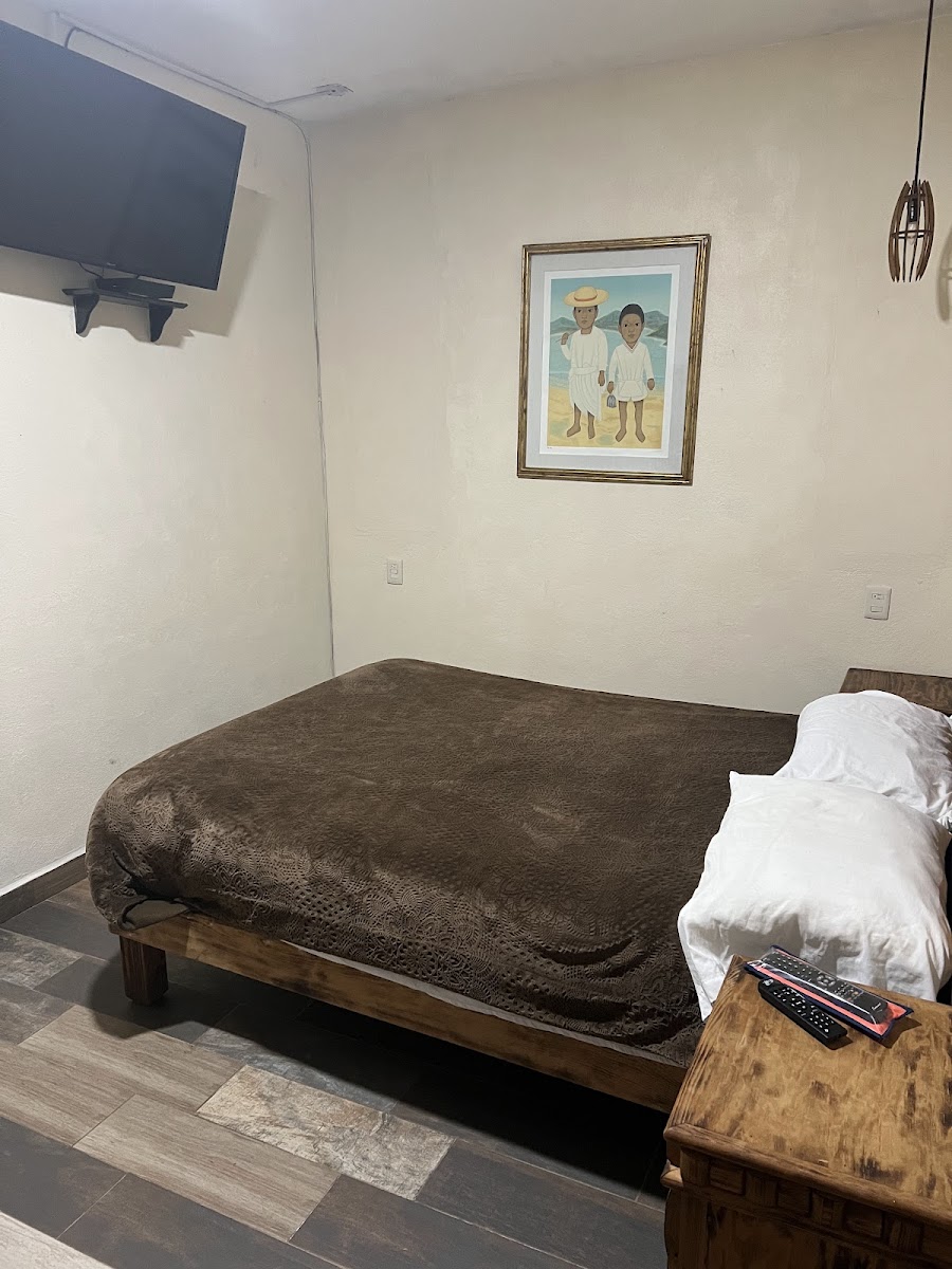 Es un hotel agradable, pensé que tendría contacto con otros huéspedes ruidosos como en los hostales pero, no sucede así, cada quien se queda en su habitación. Si necesitas algo de la cocina, como yo que quería hervir agua, lo pides y ellos amablemente te apoyan. Incluso me prestaron un remedio muy efectivo para un dolor de rodilla. Yo además de eso, opté por no causar molestias, ni abusar de la amabilidad y comer siempre fuera. Pero, son muy amables. Para no estar solo en la habitación cuando estaba en el hotel, caminaba a la parte de atrás, saliendo hay un camping donde hay bancas y te puedes sentar en el exterior. Afortunadamente no había nadie en ese momento ocupando esos lugares. Saliendo del hotel, bajas una privada, con cuidado porque los perros a veces ladran, a mí me atacaron justo el último día pero, los amarraron. No pasó a mayores. Bueno, si bajas puedes tomar un taxi colectivo a Valle si no traes carro. En un balance, la experiencia fue muy positiva. Lo recomiendo mucho.